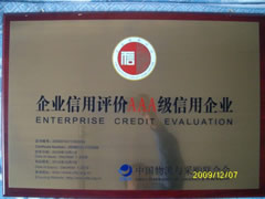 2009年12月3日,我公司被中國(guó)物流與采購(gòu)聯(lián)合會(huì)評(píng)為企業(yè)信用評(píng)價(jià)AAA級(jí)信用企業(yè)。