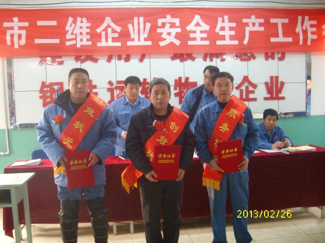 2013年2月25日,公司召開“2012年度先進(jìn)表彰會”,通報表彰公司****分公司等4個先進(jìn)單位、冷軋作業(yè)區(qū)等8個先進(jìn)作業(yè)區(qū)、任維彪等9名服務(wù)標(biāo)兵、王曉晉等45名先進(jìn)個人、楊志峰等19名創(chuàng)效狀元、白衛(wèi)平等9名創(chuàng)效第二名和董陳生等2名創(chuàng)效第三名。