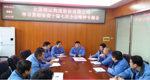 12月11日,按照尖草坪經(jīng)信局黨委的要求,公司黨委召開各分公司和各部室負(fù)責(zé)人專題會(huì)議,傳達(dá)學(xué)習(xí)貫徹省委十屆七次全會(huì)精神。會(huì)議傳達(dá)了《中共山西省委關(guān)于制定國民經(jīng)濟(jì)和社會(huì)發(fā)展第十三個(gè)五年規(guī)劃的建議》、省委書記王儒林同志的重要講話精神以及對《“十三五”規(guī)劃建議》的說明。 公司要求把學(xué)習(xí)貫徹省委十屆七次全會(huì)精神作為當(dāng)前一項(xiàng)重要政治任務(wù),與學(xué)習(xí)貫徹十八屆五中全會(huì)精神結(jié)合起來,與學(xué)習(xí)貫徹習(xí)近平總書記系列重要講話精神結(jié)合起來,與“三嚴(yán)三實(shí)”專題教育結(jié)合起來,精心組織實(shí)施,迅速掀起學(xué)習(xí)宣傳貫徹的熱潮,要認(rèn)清形勢、搶抓機(jī)遇,知難而進(jìn),進(jìn)一步明晰鋼運(yùn)物流發(fā)展思路,加快企業(yè)發(fā)展步伐。