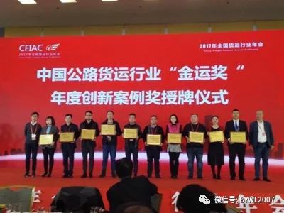 2018年1月26日,公司榮獲中國物流與采購聯(lián)合會(huì)頒發(fā)的中國公路貨運(yùn)行業(yè)“金運(yùn)獎(jiǎng)”之2017年度創(chuàng)新案例獎(jiǎng)。
